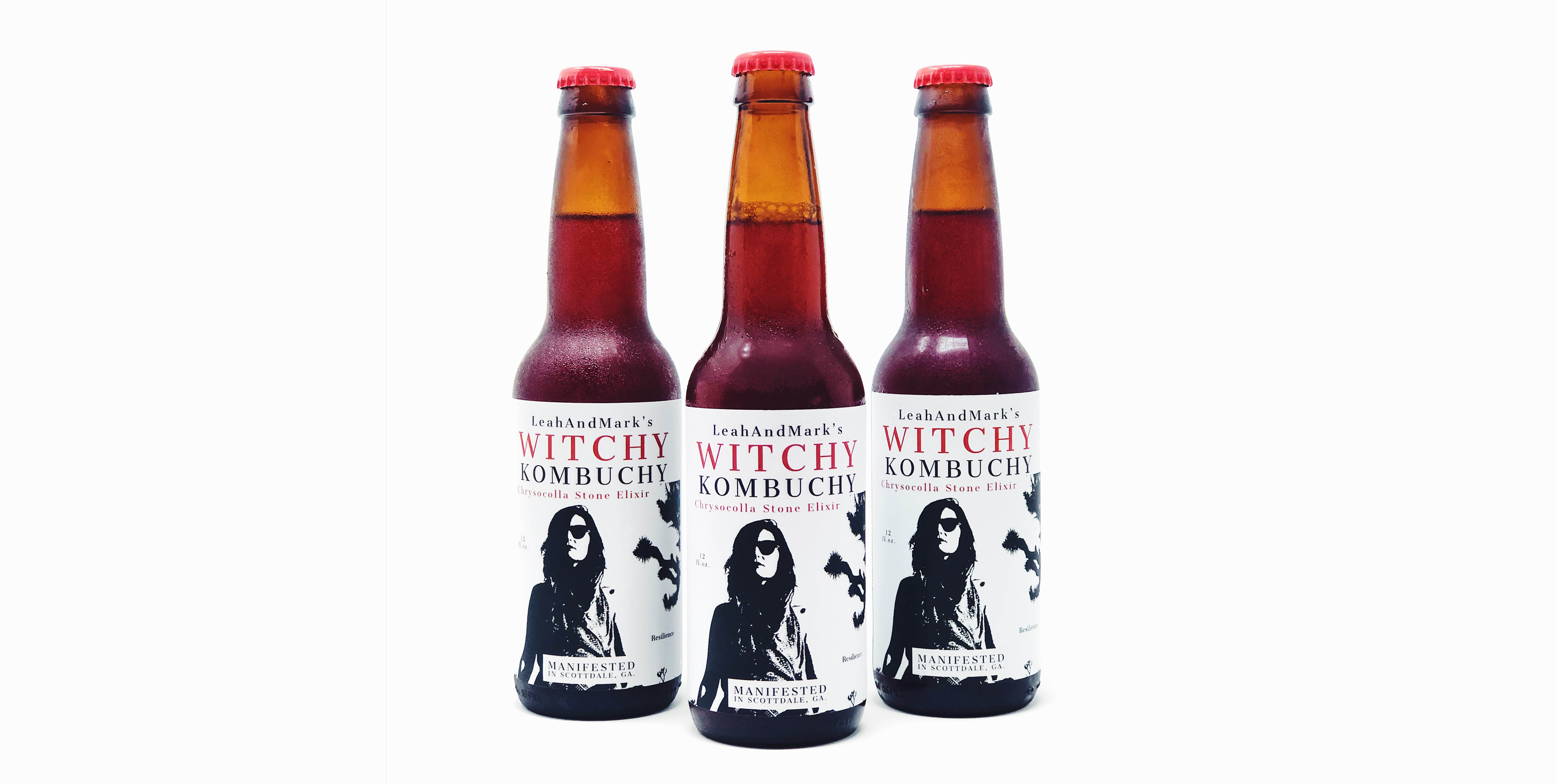 LeahAndMark’s Witchy Kombuchy is a magical brew of kombucha infused with a Chrysocolla Stone Elixir.